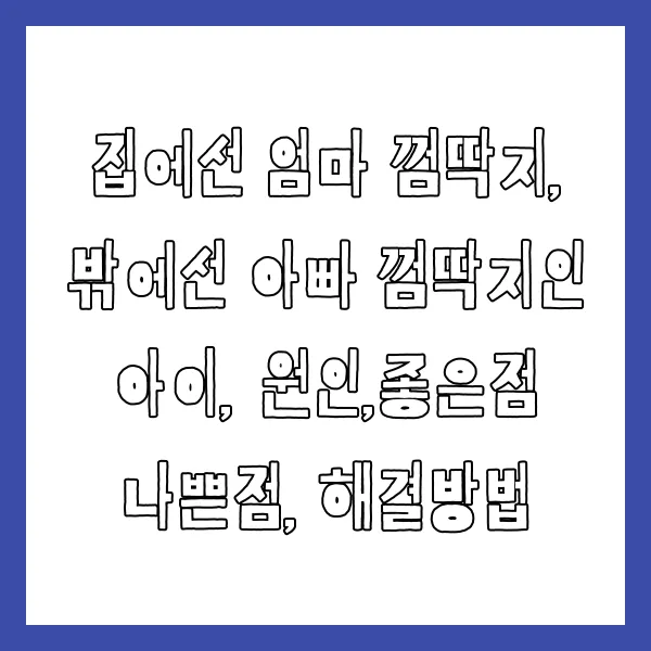 아이고, 세상에! 우리 집 귀염둥이가 엄마 껌딱지, 아빠 껌딱지 라면?😅 집에서는 엄마 바짓가랑이만 붙잡고 늘어지다가도, 밖에 나가면 아빠 등에 찰싹 붙어있는 아이. 이런 극과 극의 모습, 도대체 왜 그럴까요? 혹시 우리 아이만 이런가 싶어 걱정되시나요? 걱정 마세요! 이 신비로운 " 엄마 껌딱지, 아빠 껌딱지 " 현상, 낱낱이 파헤쳐 드립니다! 이 글을 통해 아이의 껌딱지 성향의 장점과 단점 은 물론, 원인과 해결책 까지 알아보고 균형 있는 애착 형성을 도와주세요. 자, 그럼 엄마 아빠의 육아 고민, 유쾌하게 풀어볼까요? 😉